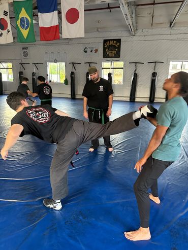Our Martial arts instructors incorporate jujitsu, Haganah, Filipino martial arts, Jeet Kune Do, boxing, and Krav Maga into their curriculum, using Kenpo karate as a foundational base to create a comprehensive self-defense program that blends traditional and modern techniques. By integrating the fluid joint locks and grappling from jujitsu, the military-based strategies of Haganah, the versatile weaponry and hand-to-hand techniques of Filipino martial arts, the striking power of boxing, and the real-world combat skills of Krav Maga, these instructors provide students with a well-rounded approach to self-defense. Kenpo karate serves as the core, offering a strong foundation in striking, blocking, stance work and movement, which is then enhanced by the specialized techniques from each of the other disciplines, ensuring students are prepared for a wide range of potential threats.